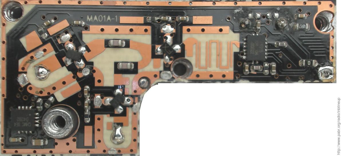 Certains modèles ont un circuit intégré près du premier étage micro-ondes - probablement un régulateur de tension de polarisation pour les transistors FET.